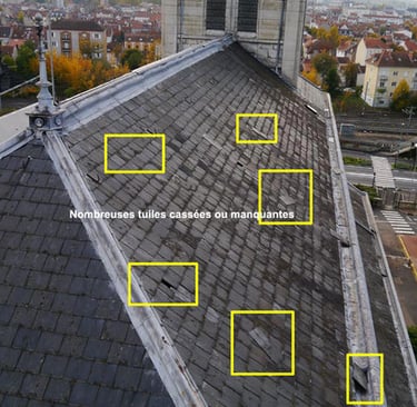 tuiles cassées ou déplacées